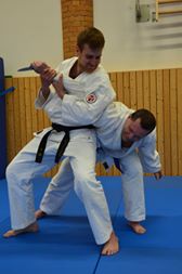 Einen Schritt weiter geht das Jiu Jitsu wo man dann auch Schläge und Tritte einsetzt um sich in einer Notsituation zu verteidigen.